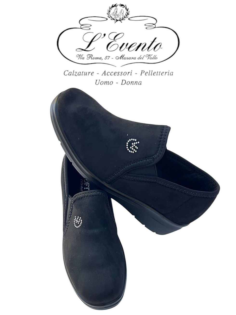 Mocassino donna scamosciata, di colore nero,dal 35 al 40